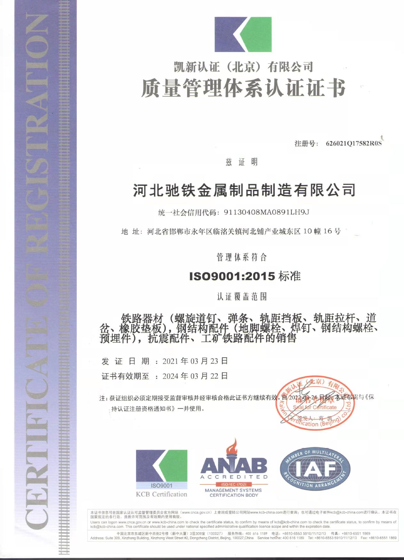 主要產(chǎn)品:鐵路配件、行車配件、工礦配件、魚尾板、道釘、壓軌器、軌道壓板、軌距拉桿、護(hù)軌扣板、T型螺栓、魚尾螺栓、彈條、軌距擋板